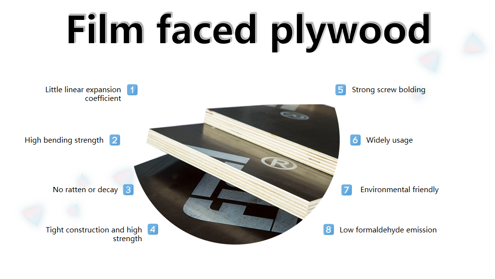 필름 코팅 합판은 건축용 합판의 일종입니다. 거푸집은 고품질의 소나무, 유칼립투스 및 기타 보드로 만들어졌으며 표면은 강력한 방수성이 있는 페놀 수지 함침지로 처리되었습니다. "코팅 합판"이라고합니다. 주로 고층 건물, 전단벽, 수직 벽 패널 및 댐, 터널 및 육교, 아치교 및 기타 교량, 빔 및 기둥 및 기타 건물 거푸집 공사에 사용됩니다.